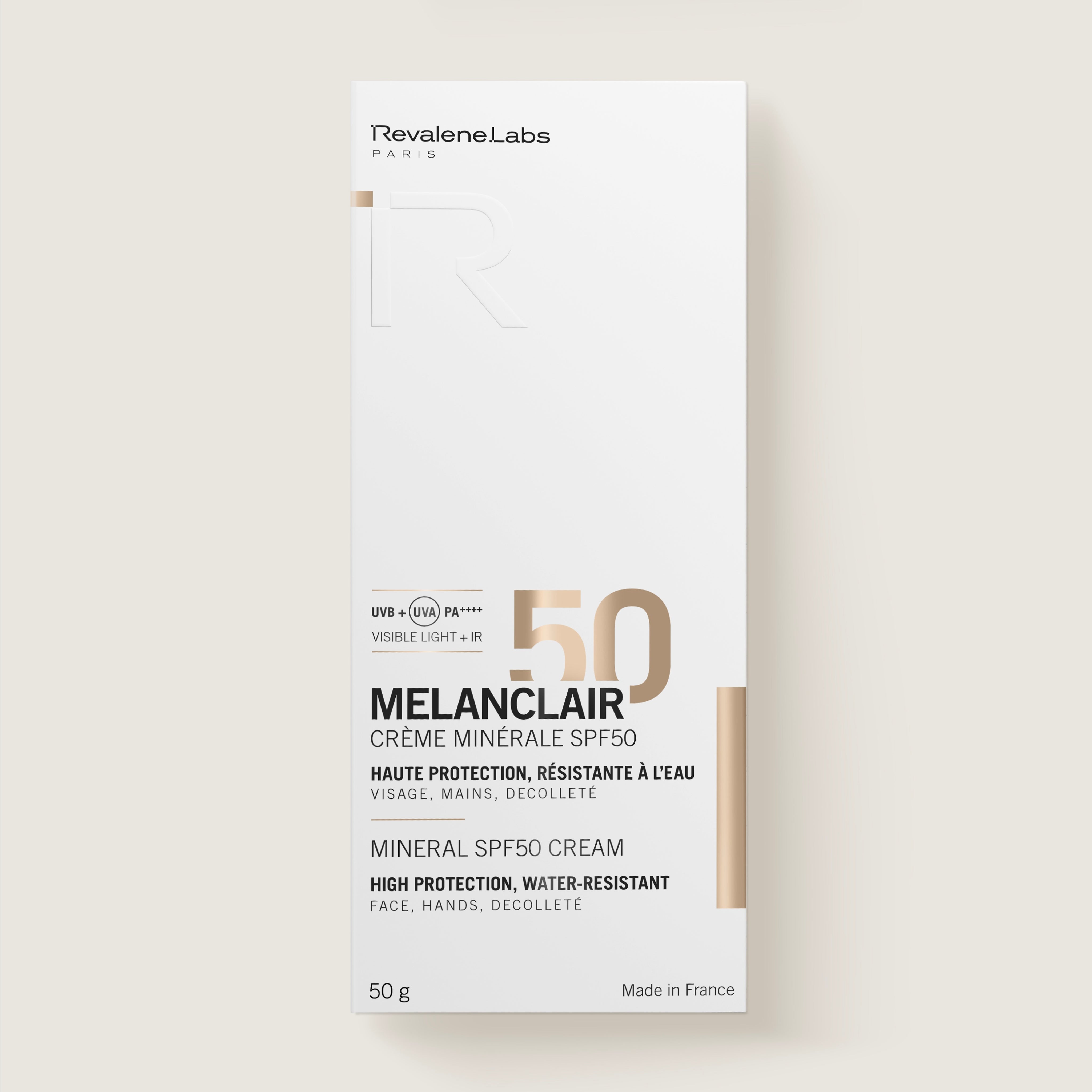 Melanclair Mineral SPF50 Cream contains only mineral filters, making it ideal for sensitive skin. It provides high broad-spectrum protection against UVA, UVB, blue light, and infrared rays.